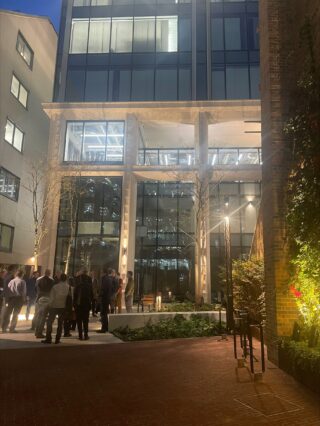 Visitors explored the pioneering, sustainable workspace including the multi-level entrance, and the new pocket park. The presentation that followed offered a chance to understand how Stonecutter achieved the lowest embodied carbon score for a major new build within the City of London, which was below the London Plan’s aspirational 600 kg CO₂/m² target.